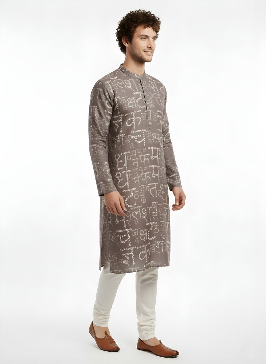 Grey Hindi Bandhni Satin Kurta