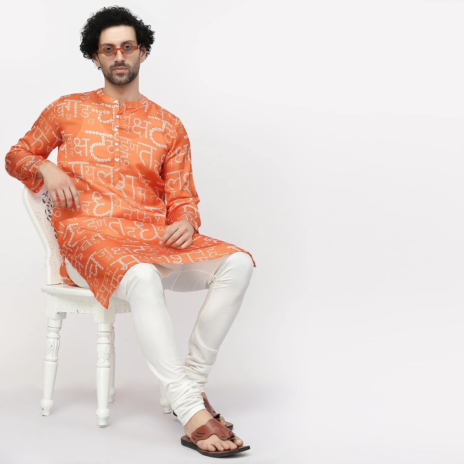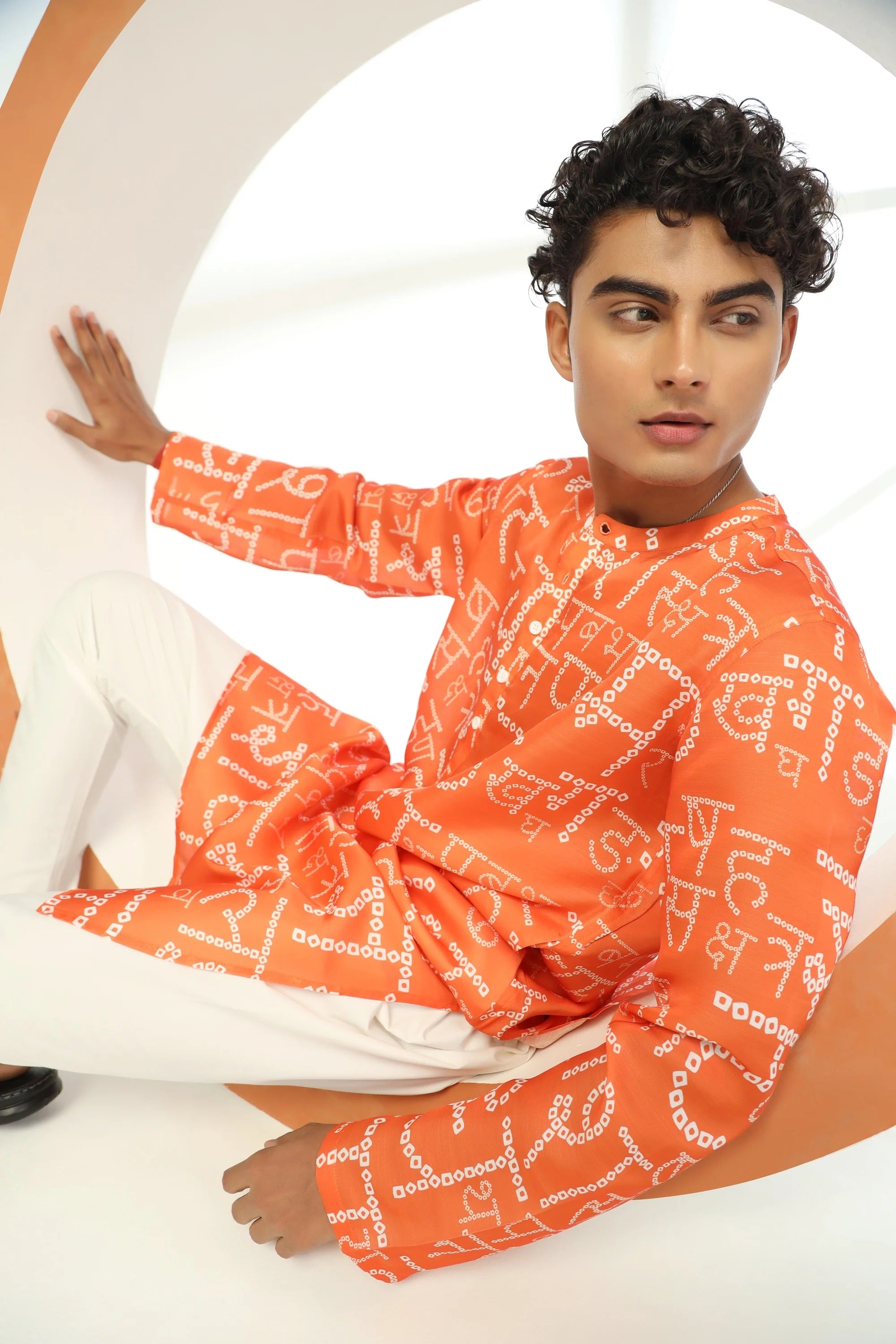 Orange Hindi Bandhni Satin Kurta